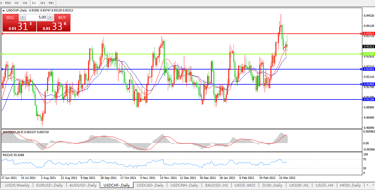 交易策略:0.9300上方看涨,目标0.9380、0.9500