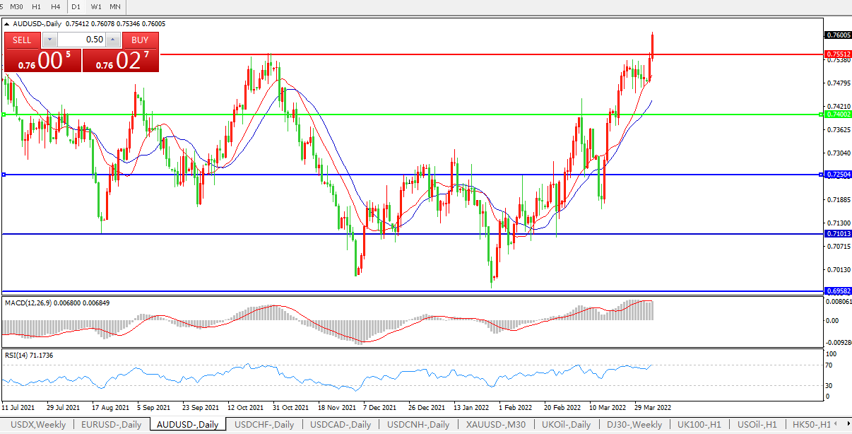压制位:0.7550 0.7650