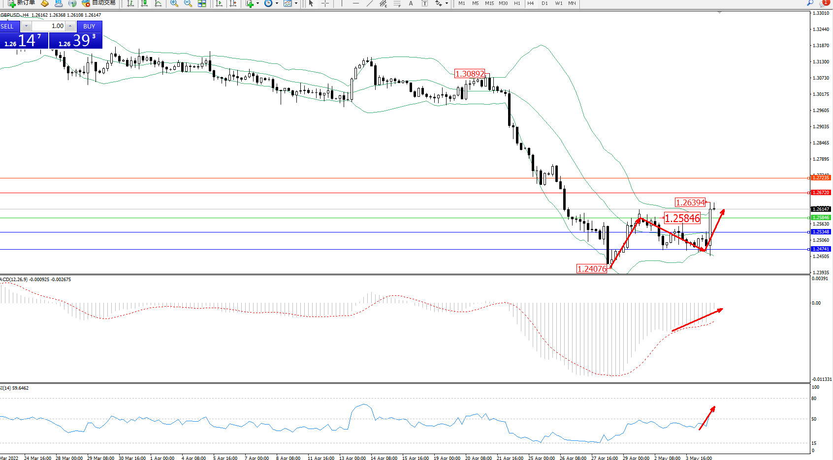 英镑美元GBPUSD ——4小时K线图显示: