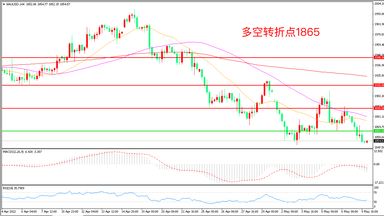 交易策略:在1865.00之下看跌,目标1840.00 1820.00