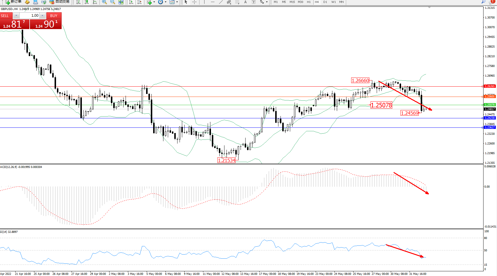 英镑美元GBPUSD ——4小时K线图显示: