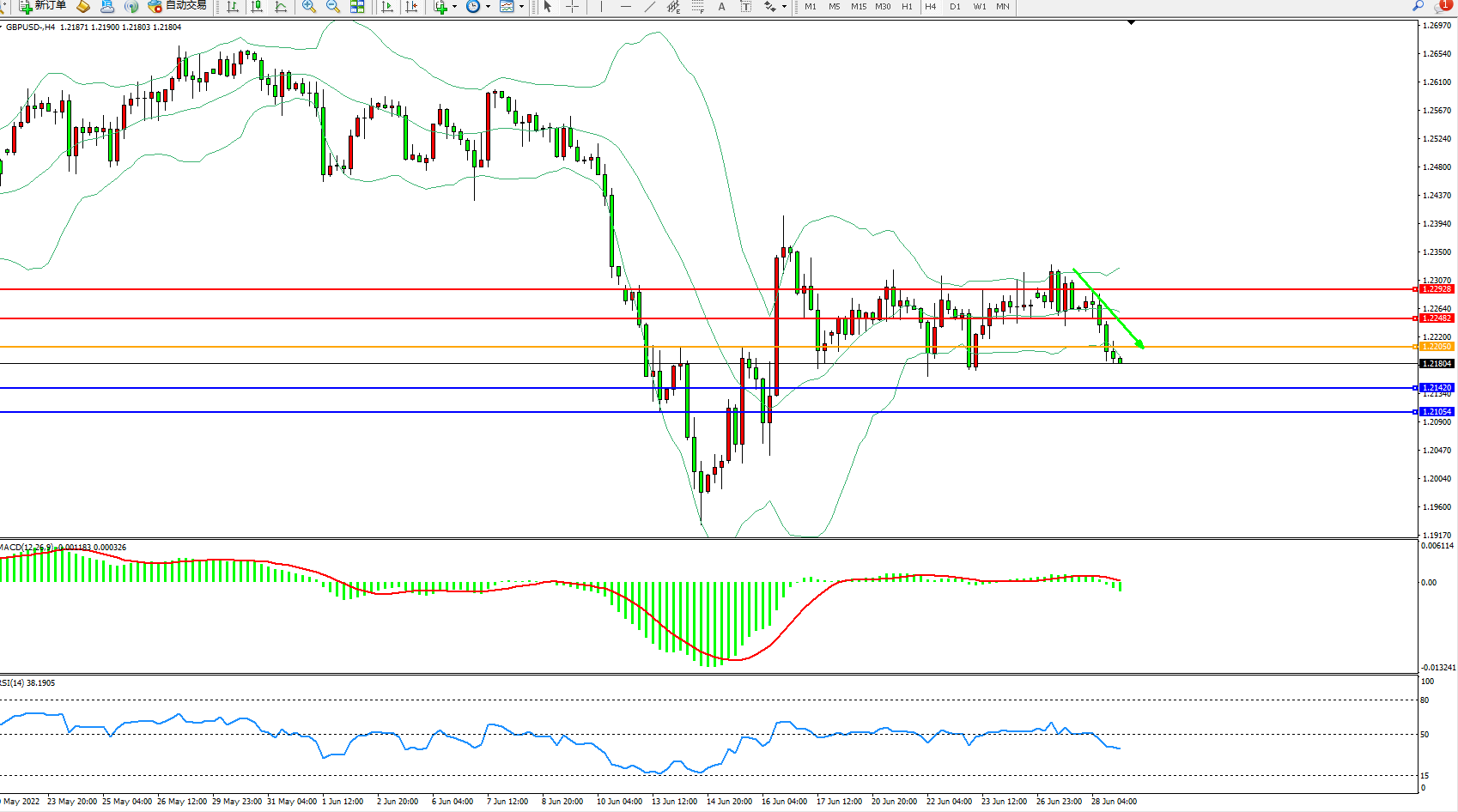 镑美:跌破下轨下行
