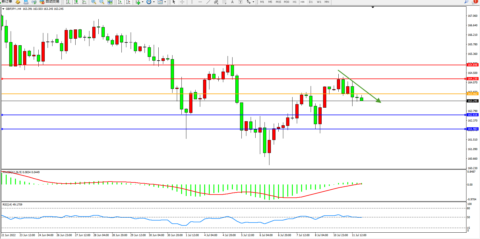 交易策略:163.562下方看跌,目标162.616、161.983