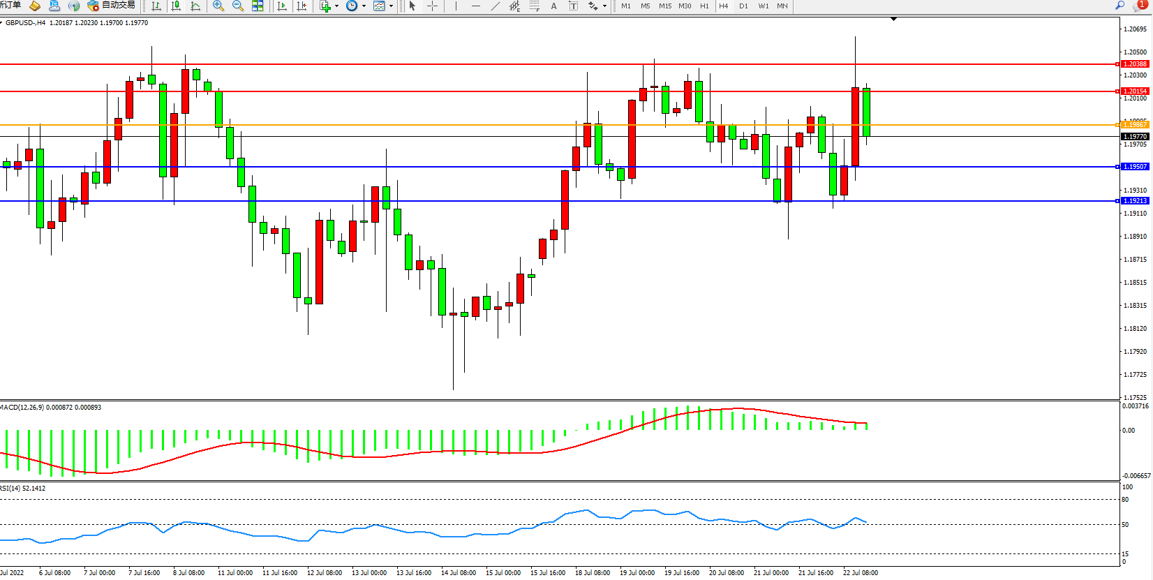 英镑美元GBPUSD ——4小时K线图显示: