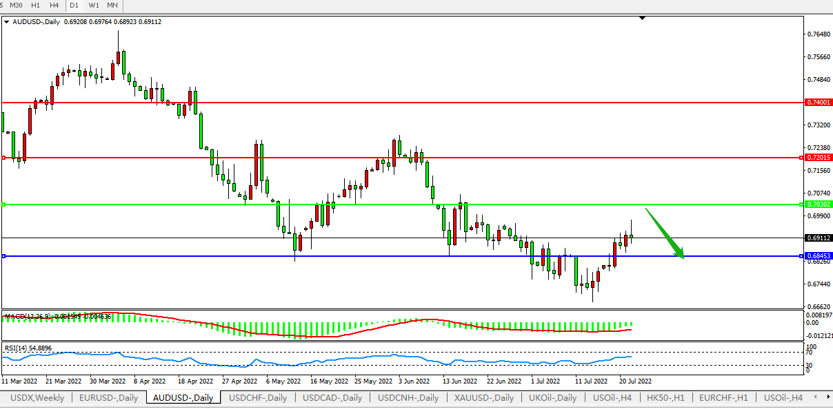 交易策略:0.7030下方看跌,目标0.6850、0.6700