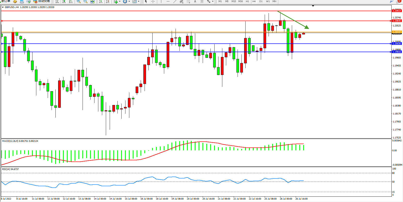 英镑美元GBPUSD ——4小时K线图显示: