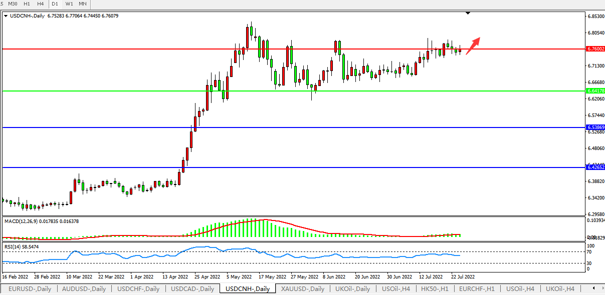 美元人民币USDCNH 日线图: