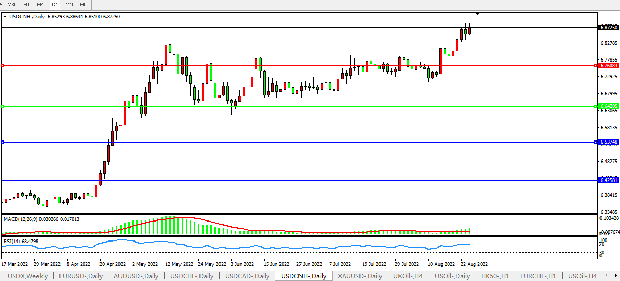 美元人民币USDCNH 日线图: