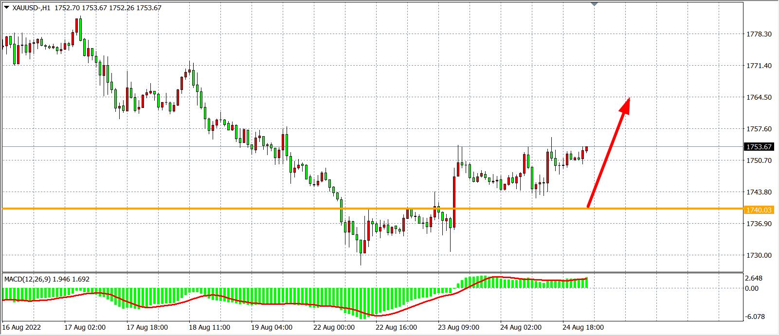 1小时图看,金价在1740美元之上运行,短线延续底部反弹形态,日内在1740之上依然维持看涨不变,MACD于零轴之上持续温和放量,显示行情有进一步走高的动能,上方目标1760-1780