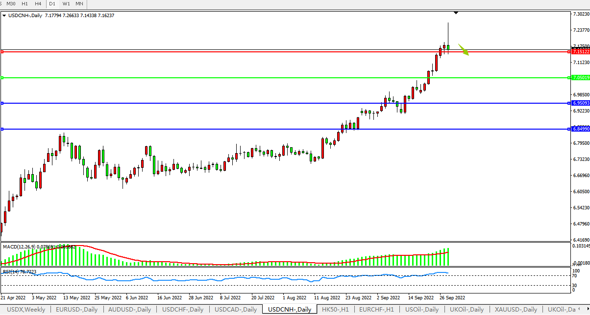 美元人民币USDCNH 日线图: