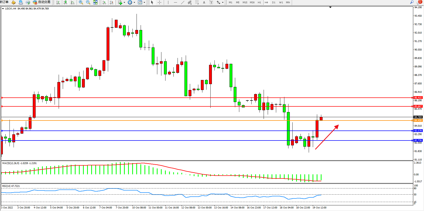 原油USOil——4小时K线图显示: