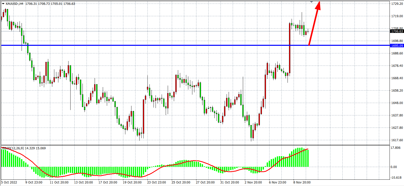 交易策略:在1695.00之上看涨,目标1720.00         1735.00