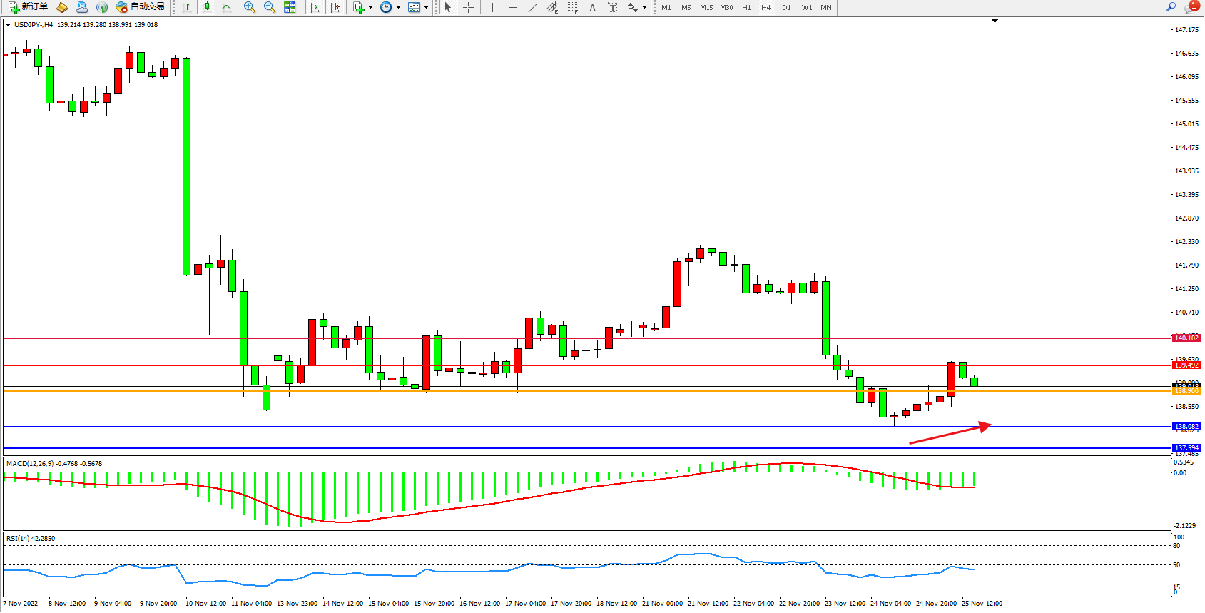 交易策略:138.900上方看涨,目标139.492、140.102