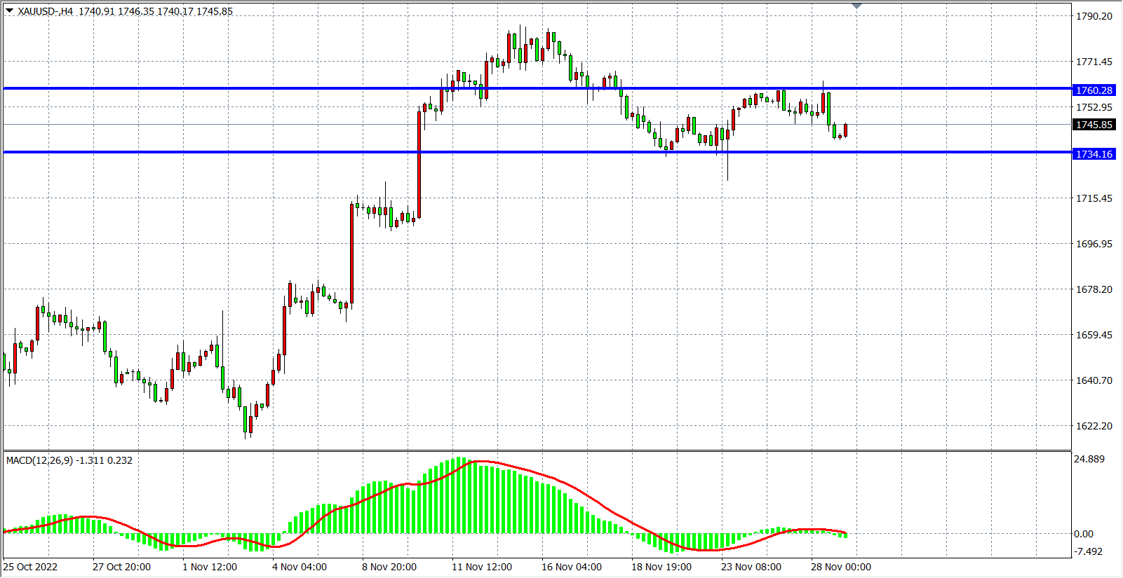 黄金:1734-1760盘整区间