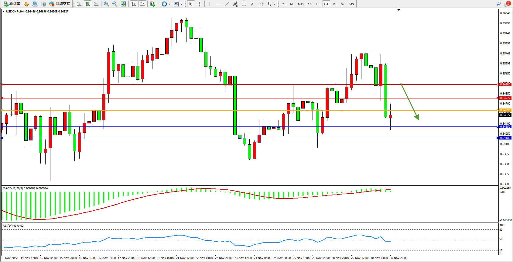 交易策略:0.94596下方看跌,目标0.94352、0.94185