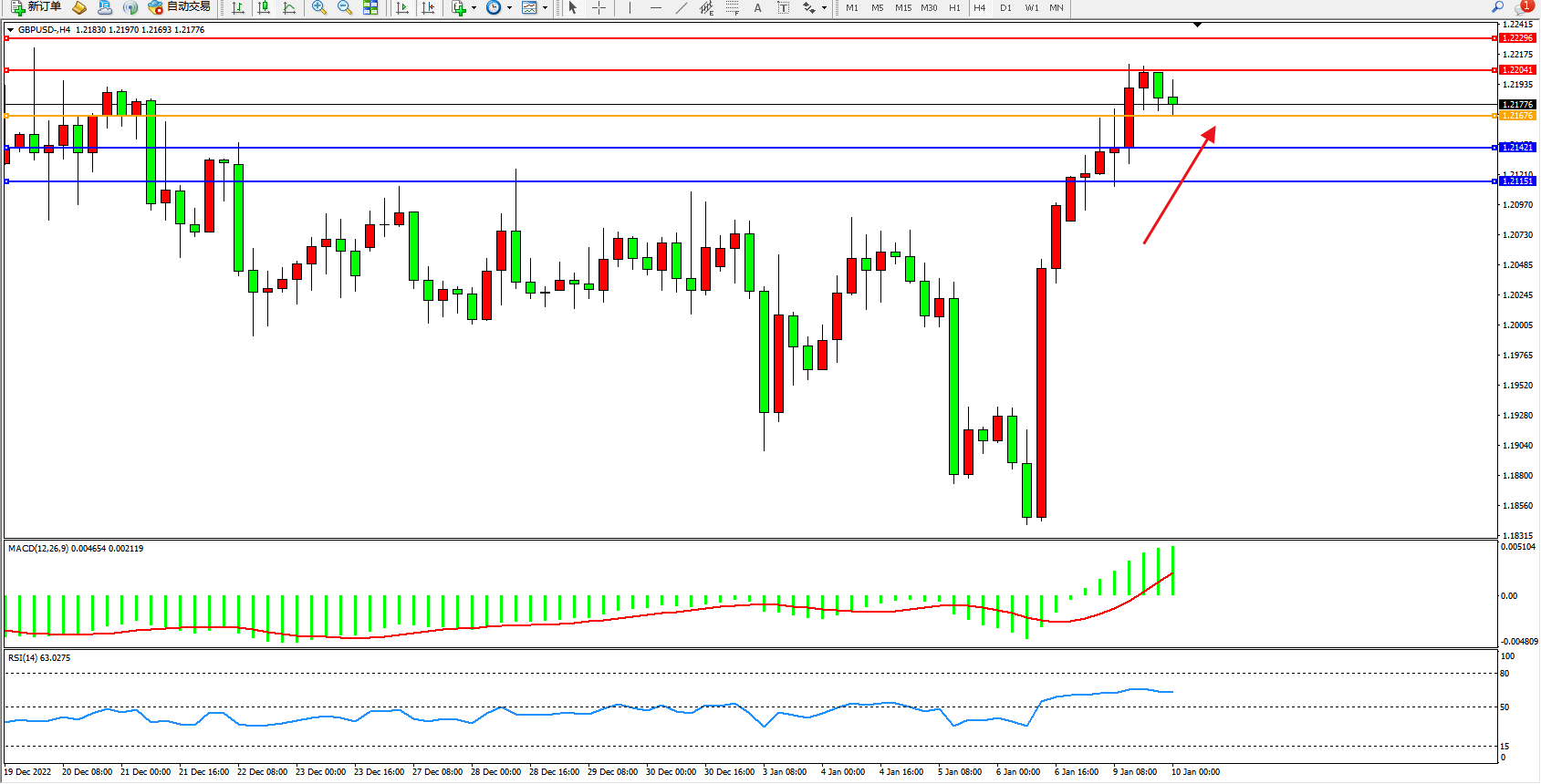 英镑美元GBPUSD ——4小时K线图显示:
