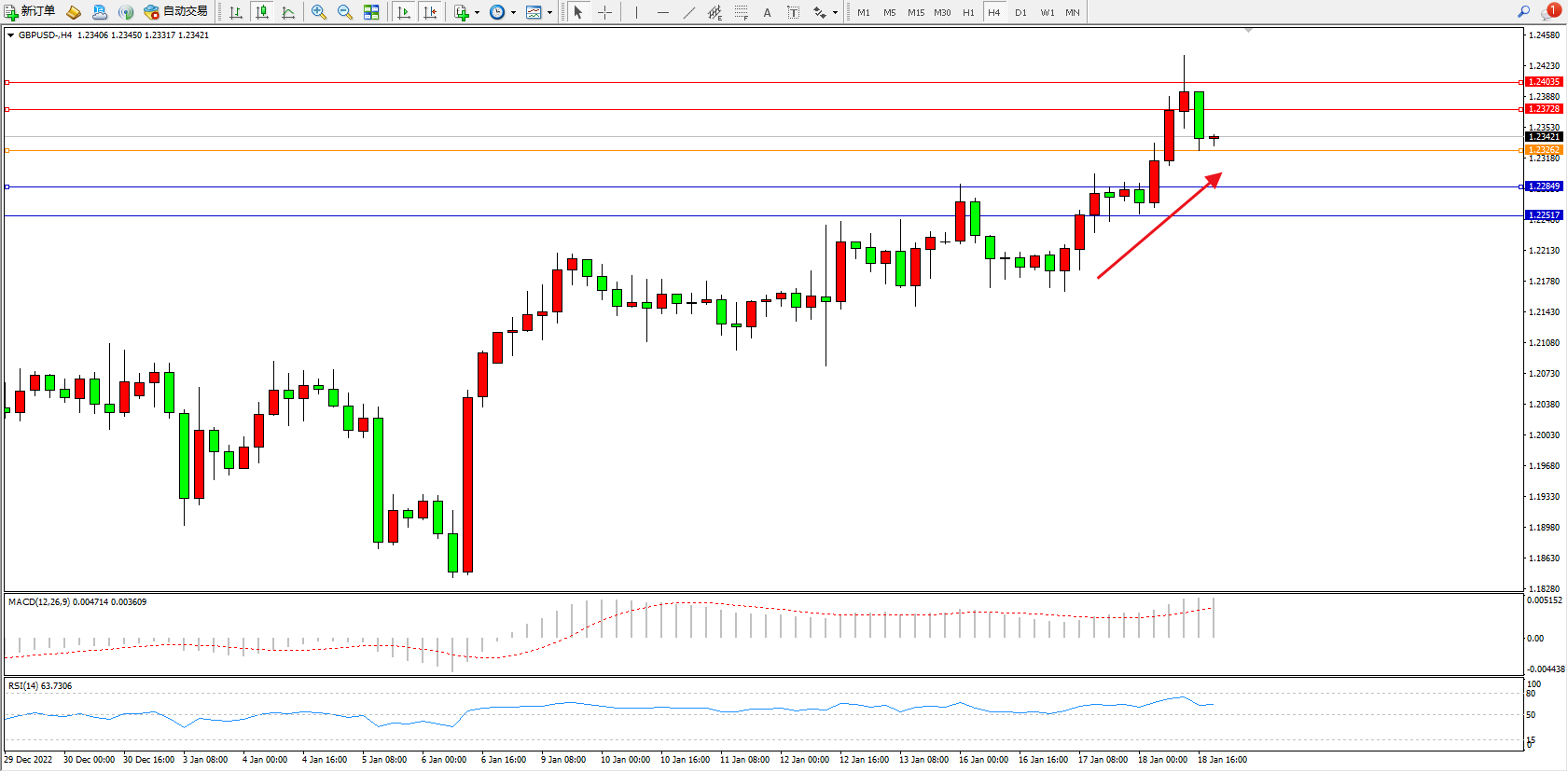 英镑美元GBPUSD ——4小时K线图显示:
