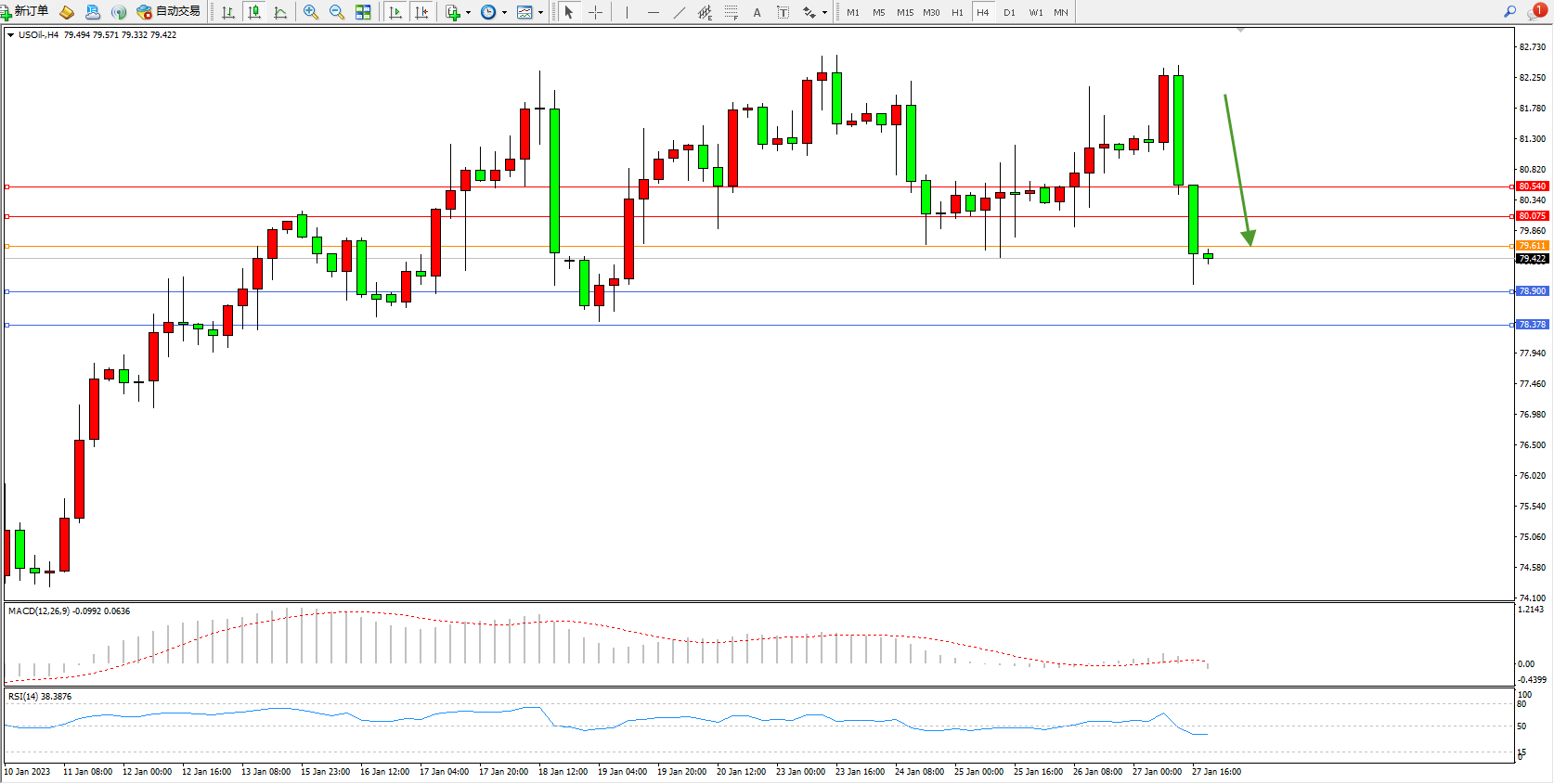 交易策略:79.611下方看跌,目标78.900、78.378