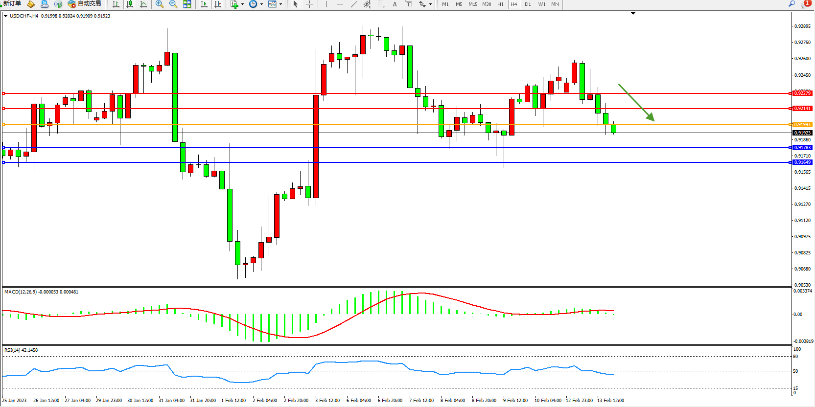 美元瑞郎USDCHF——4小时K线图显示: