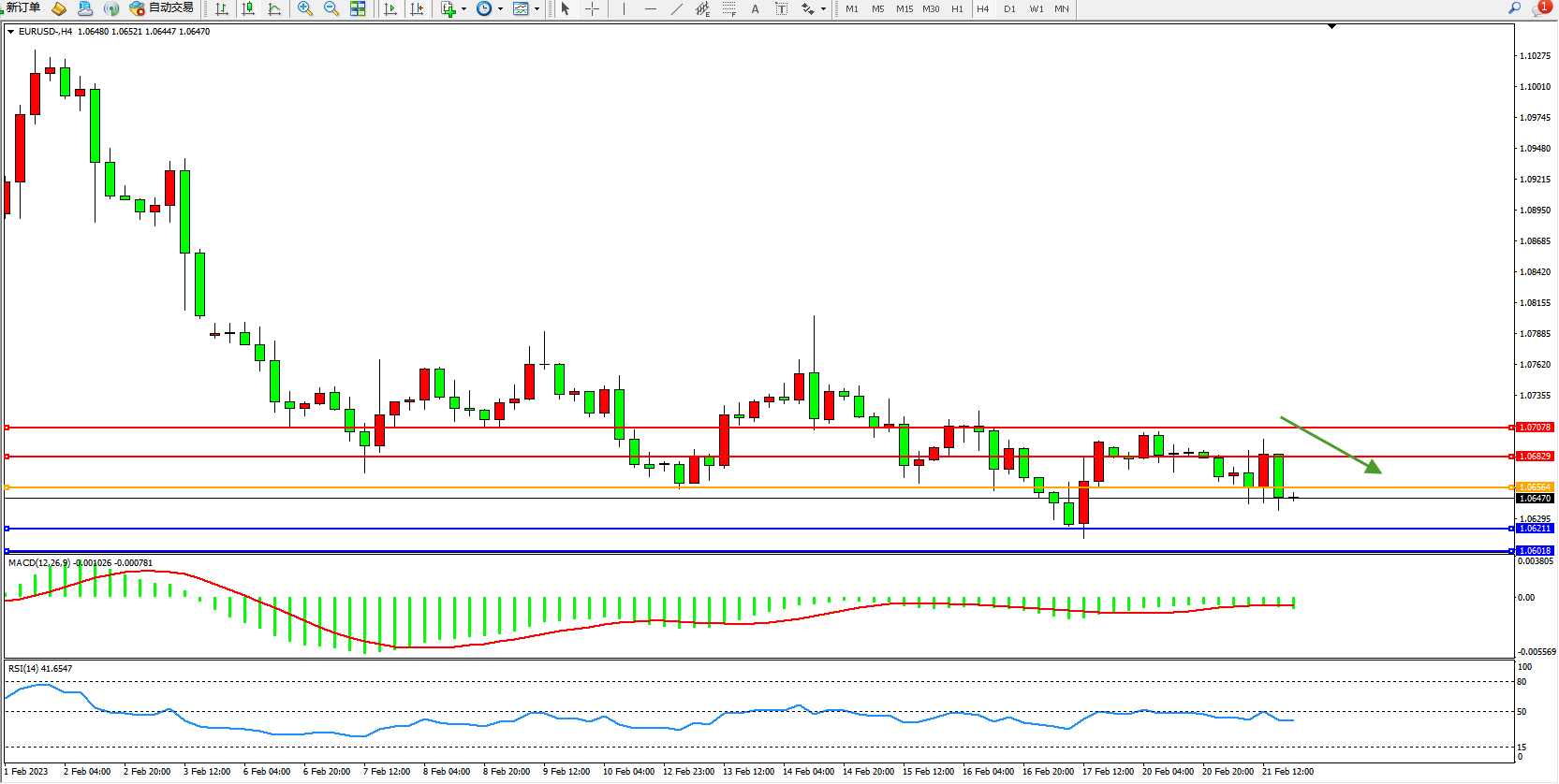 交易策略:1.06564下方看跌,目标1.06211、1.06018