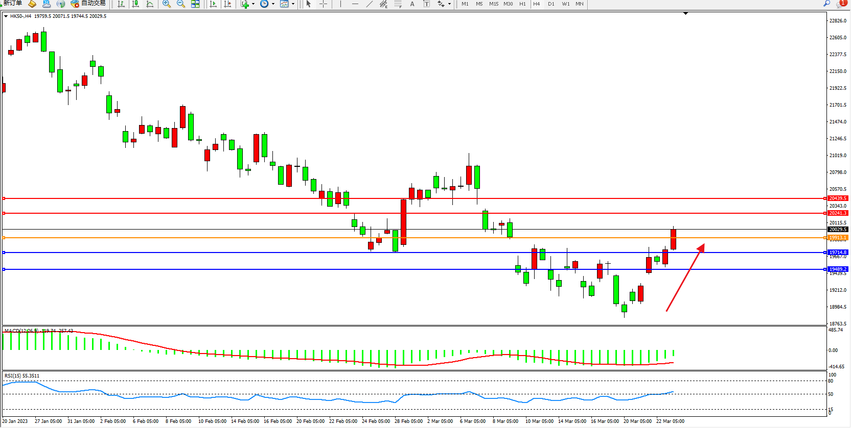 恒指:多头拉升