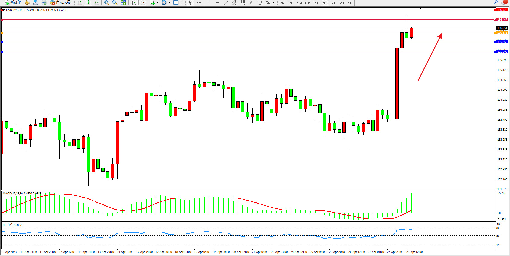 阻力位:136.467  136.725