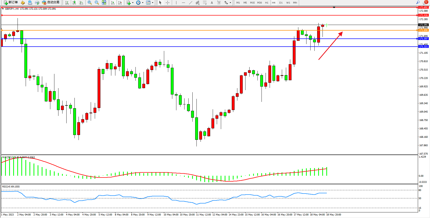 交易策略:171.890上方看涨,目标172.416 172.692