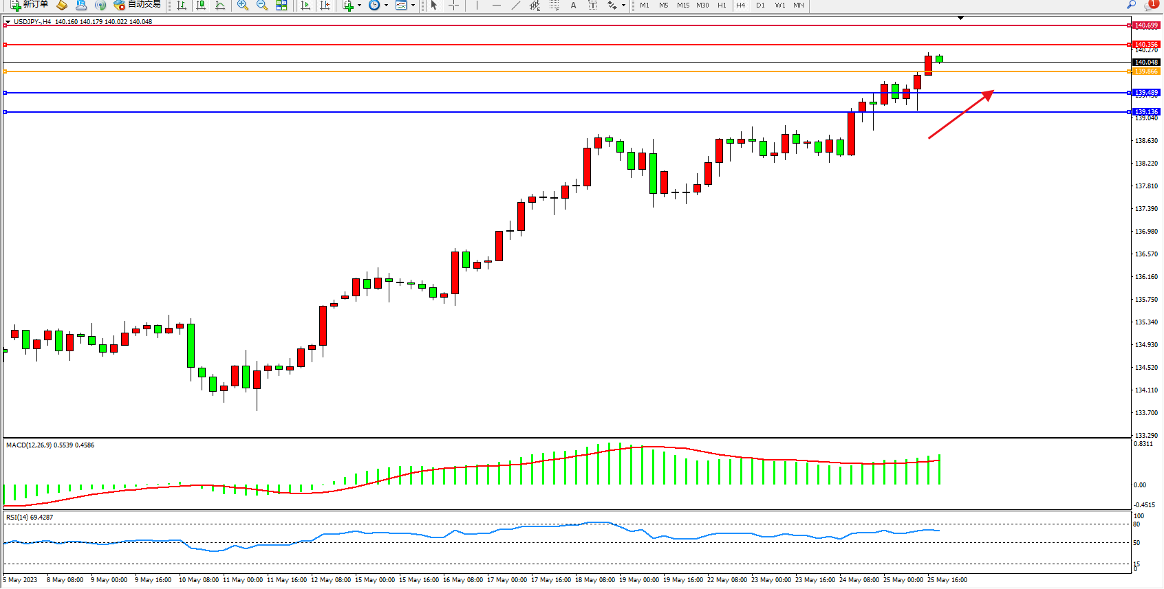 交易策略:139.866上方看涨,目标140.356 140.699