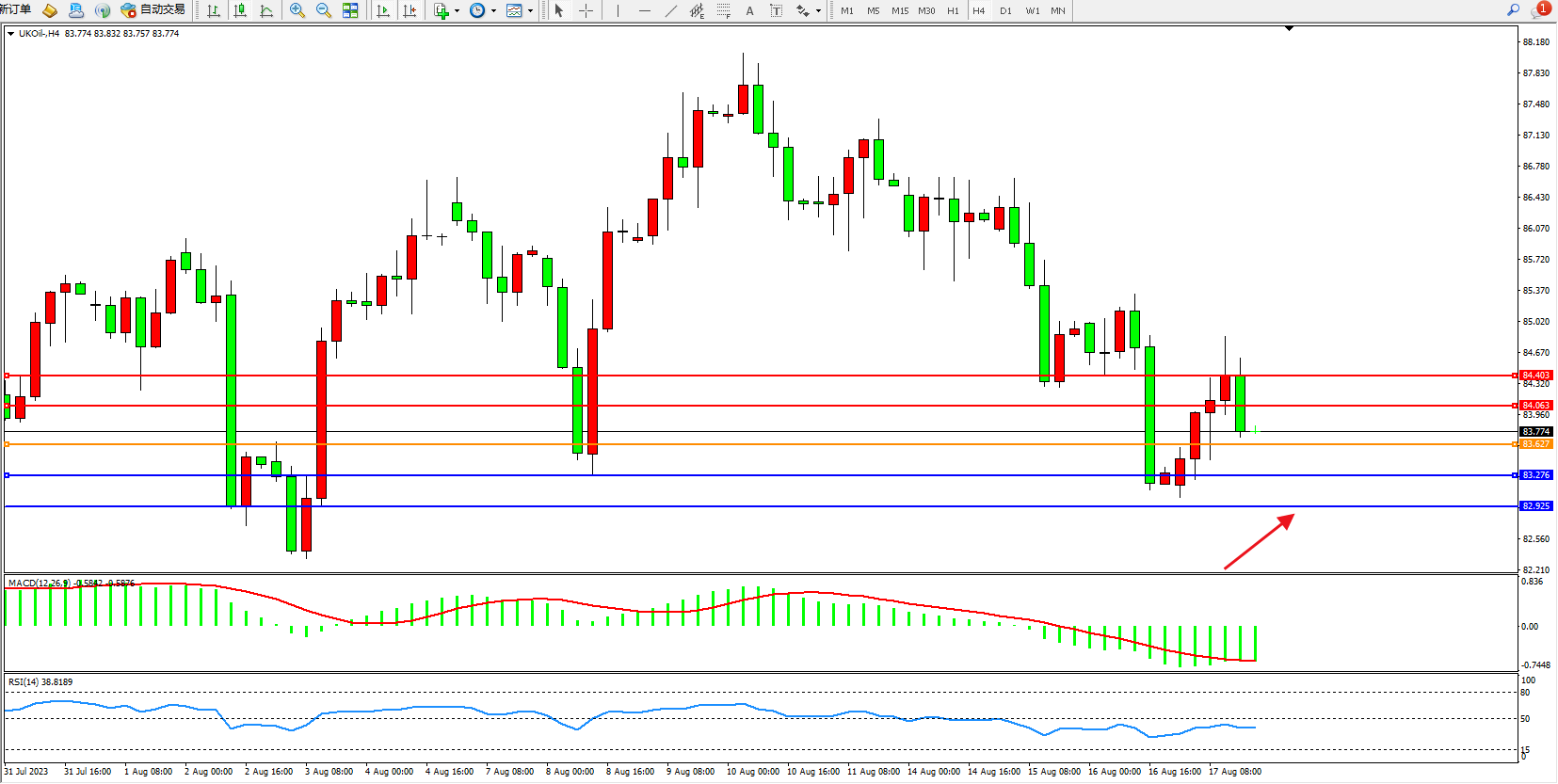 交易策略:83.627上方看涨,目标84.063  84.403