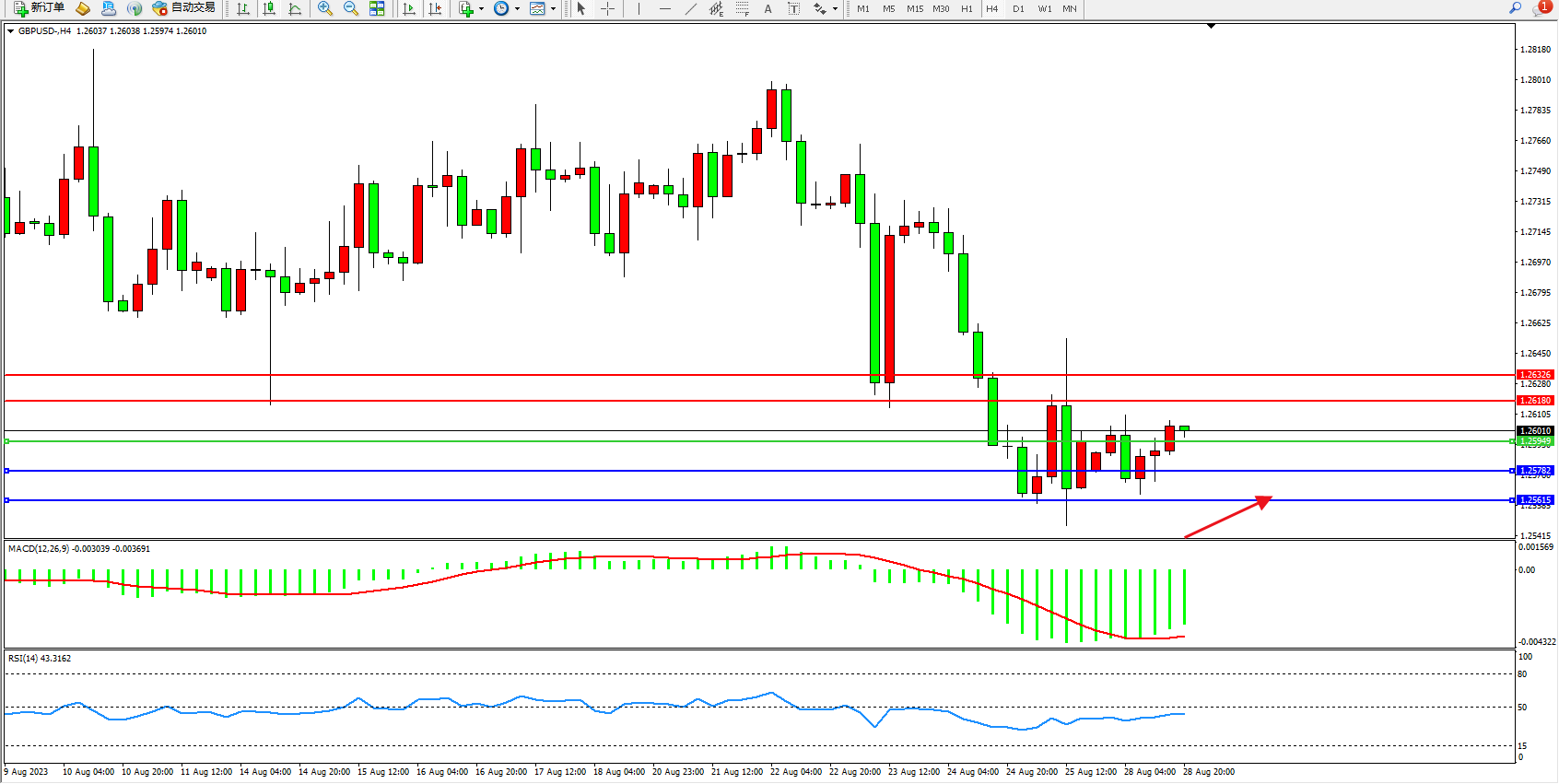 交易策略:1.25949上方看涨,目标1.26180  1.26326