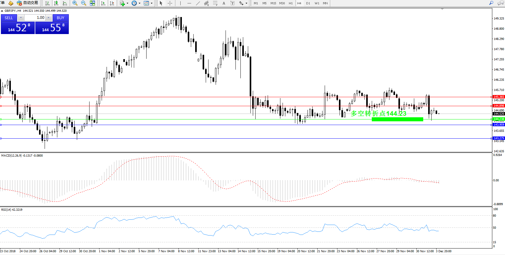 交易策略:144.23上方看涨,目标144.898、145.365;