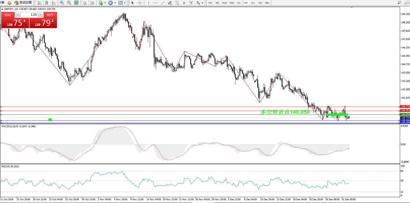 交易策略:140.050下方看跌,目标139.506139.299