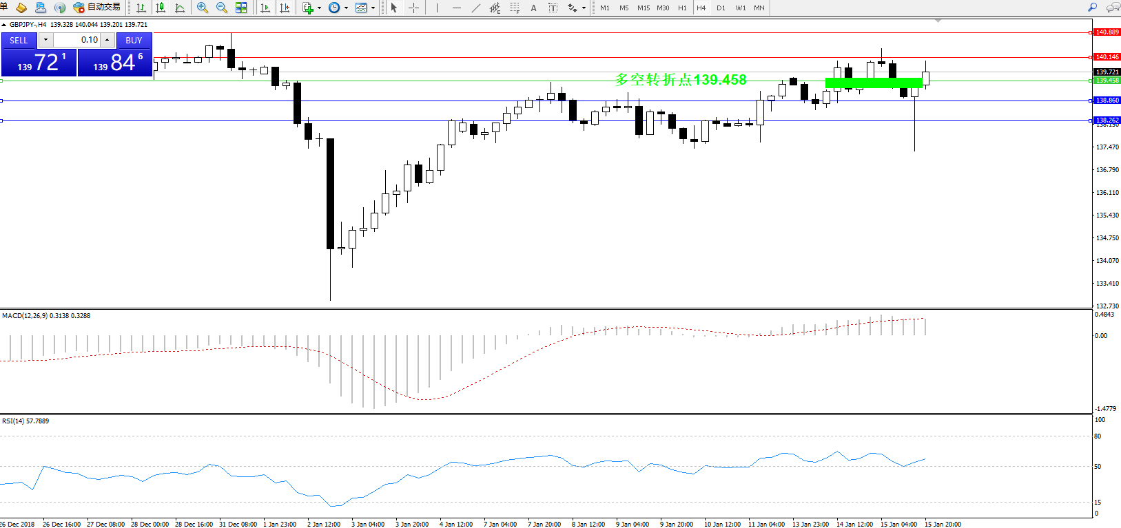 交易策略:139.458上方看涨,目标140.146140.889