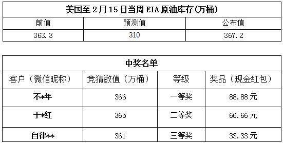 2019年2月第3期“EIA大竞猜”活动中奖公告