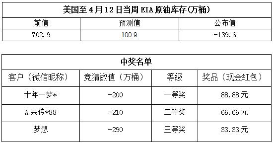 2019年4月第3期“EIA大竞猜活动的中奖结果已出,获奖信息如下: