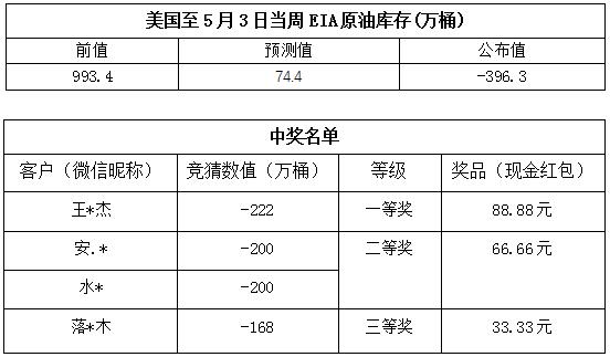 2019年5月第1期“EIA大竞猜”活动的中奖结果已出,获奖信息如下: