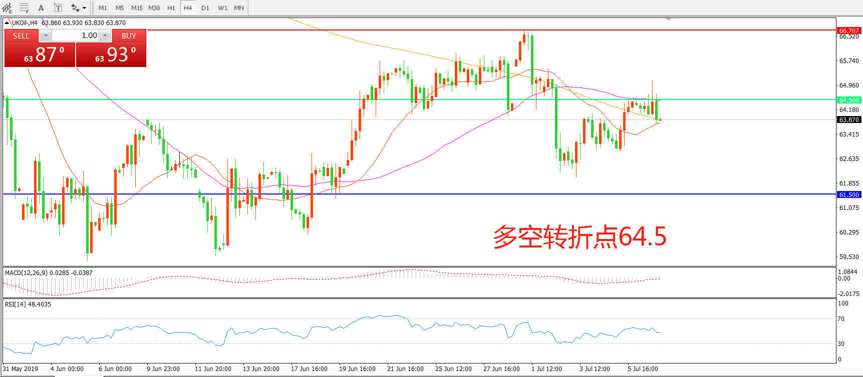 多空转折点:64.50