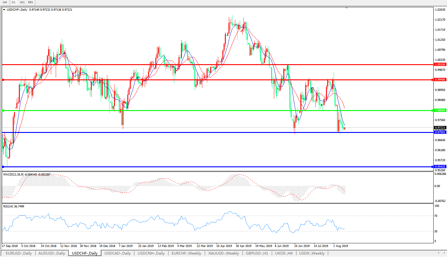 美元兑瑞郎USDCHF   日线图: