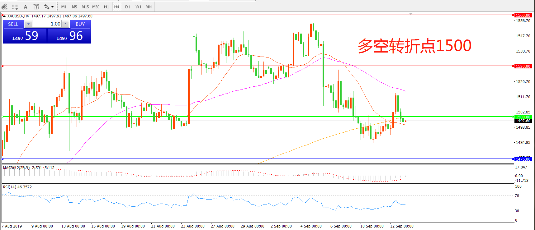 多空转折点:1500.00