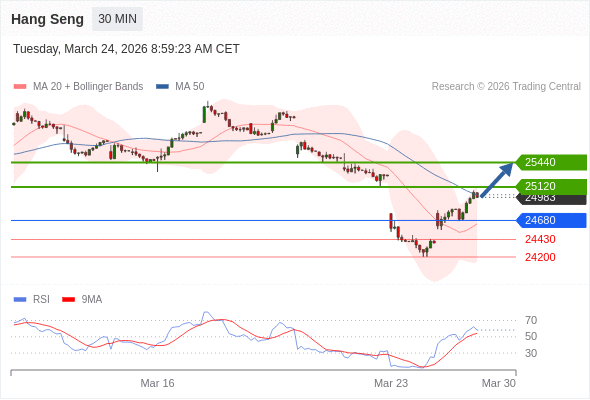 恒生指数 当日内: 目标为25440。