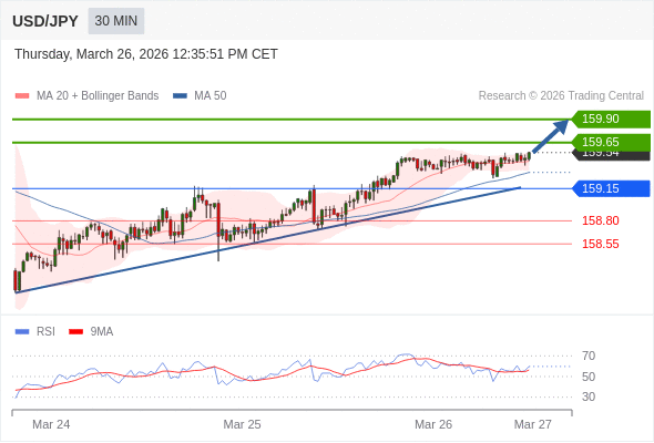 在 159.15 之上,看涨,目标价位为 159.65 ,然后为 159.90 。