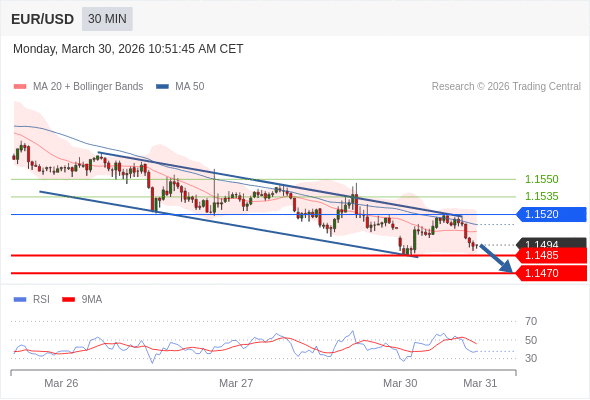 在 1.1520 之下,看跌,目标价位为 1.1485 ,然后为 1.1470 。
