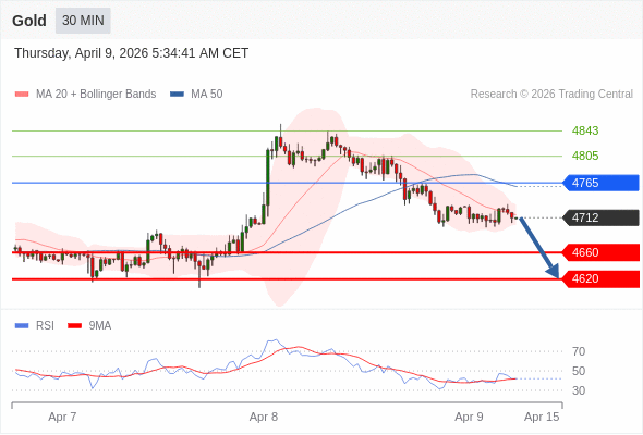 在 4765 之下,看跌,目标价位为 4660 ,然后为 4620 。
