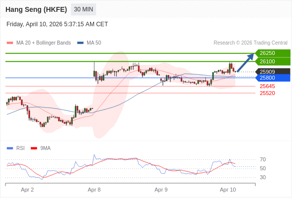 在 25800 之上,看涨,目标价位为 26100 ,然后为 26250 。