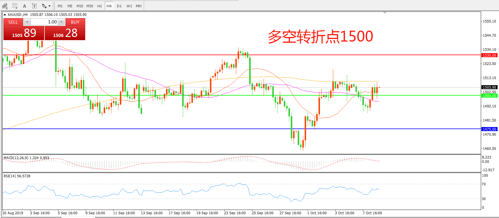 多空转折点:1500.00