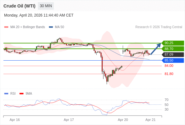 在 85.50 之上,看涨,目标价位为 88.70 ,然后为 90.25 。