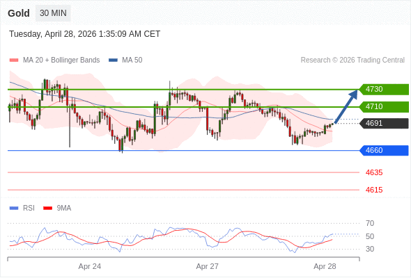 在 4660 之上,看涨,目标价位为 4710 ,然后为 4730 。