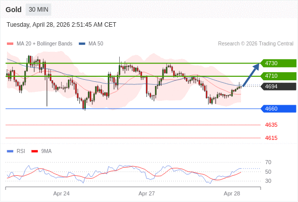 在 4660 之上,看涨,目标价位为 4710 ,然后为 4730 。