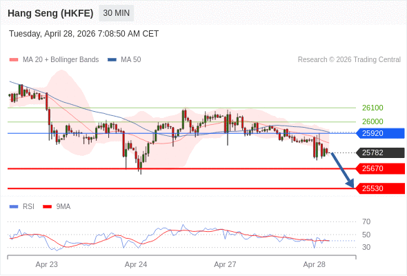 在 25920 之下,看跌,目标价位为 25670 ,然后为 25530 。