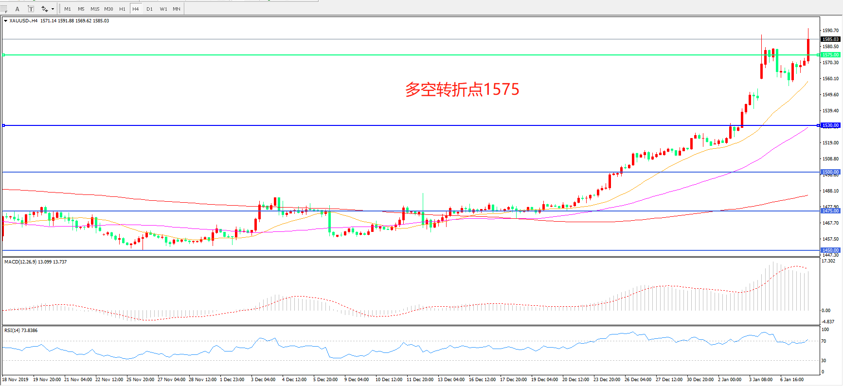 多空转折点:1575.00